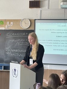 Am folgenden Tag wurde es ernst. Die Debatten fanden am Karinthy Frigyes Gymnasium statt. Dort lernten die SchülerInnen ihre MitstreiterInnen in den Komitees kennen und vertraten ab dann „ihr“ Land. Das Thema der Konferenz war „Divided by Differences, United by Dialogue“. Ob es um Frauenrechte ging, die schwierige politische Lage in Europa und der Welt oder die (finanzielle/humanitäre) Unterstützung für einige Länder – diverse weltbewegende Fragen wurden debattiert und schließlich in Form von Resolutionen festgehalten. Beim Halten von Reden waren gute Recherche im Vorfeld, Standhaftigkeit und natürlich Wortgewandtheit gefragt. Einige Nationen setzten sich durch, andere beharrten auf ihrem Standpunkt oder hielten sich dezent zurück.