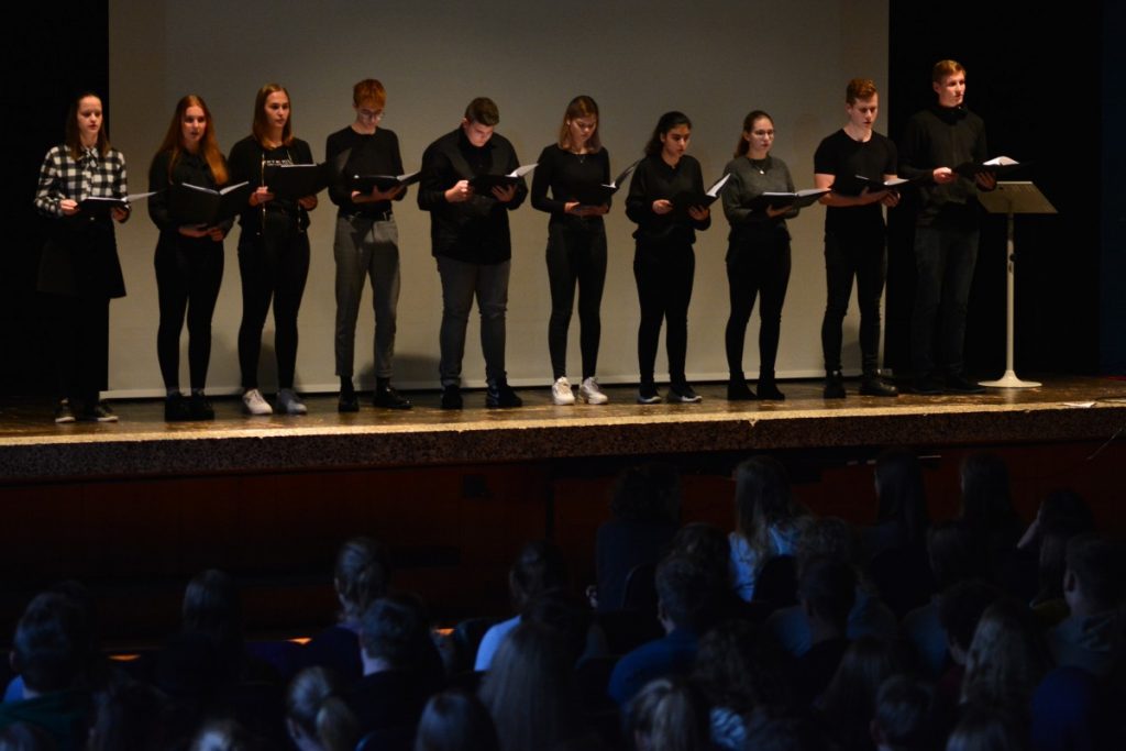 Erst der Vortrag des unbekannten Textes aus dem Roman „Kicker im Kleid“ von David Walliams brachte die Entscheidung in diesem spannenden Wettbewerb. Lars Meijer gelang es in besonderer Weise, seinen Text in einer angemessenen Betonung klar und deutlich vorzulesen und mit seinem Vortrag die Aufmerksamkeit der ZuhörerInnen zu wecken. Glücklich konnte er seine Urkunde in Empfang nehmen, die ihm von Anton Niemeyer, Schulsieger des vergangenen Jahres und Mitglied in der diesjährigen Jury, überreicht wurde – verbunden mit einigen hilfreichen Tipps für den Kreisentscheid im Februar 2020.